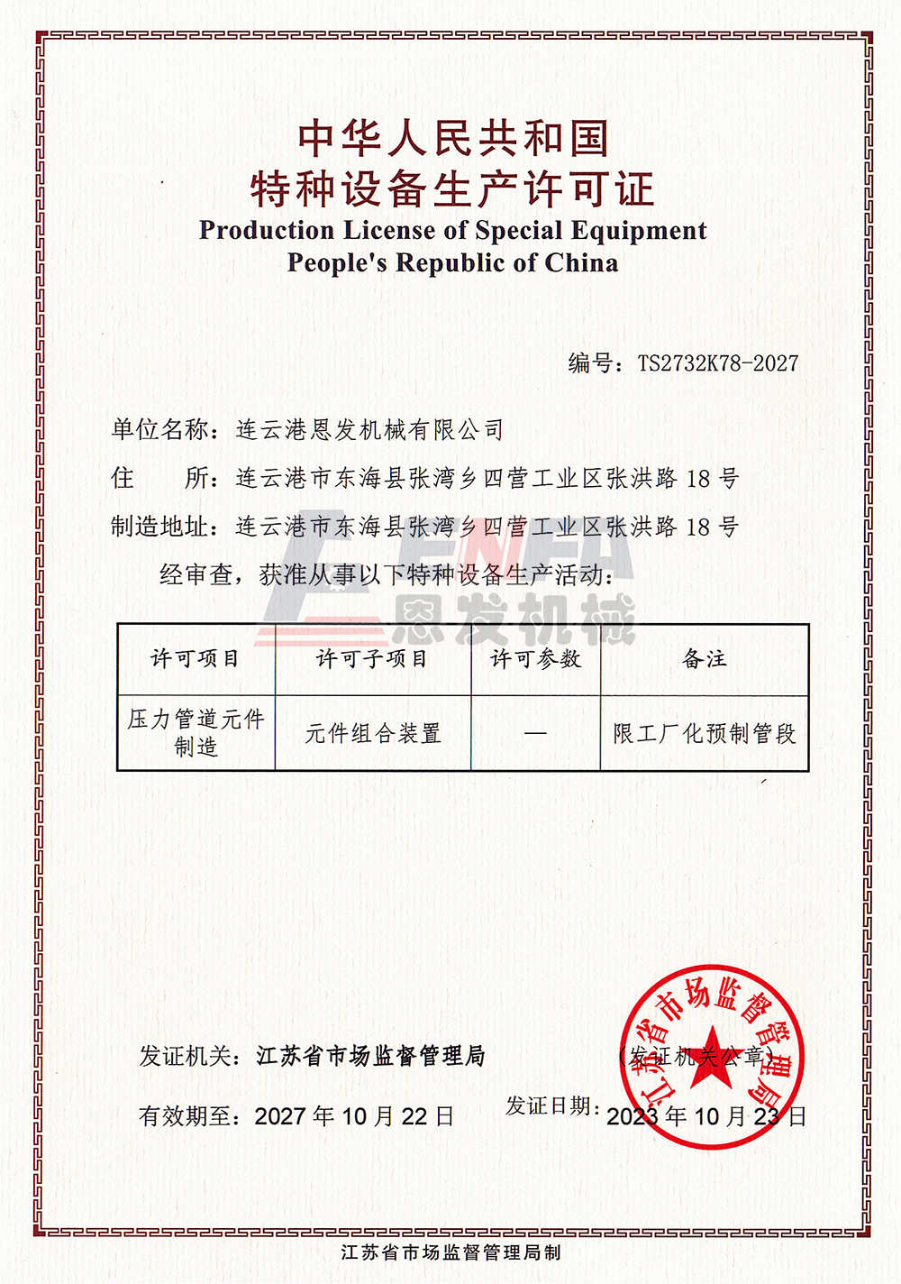 Special Equipment Manufacturing License