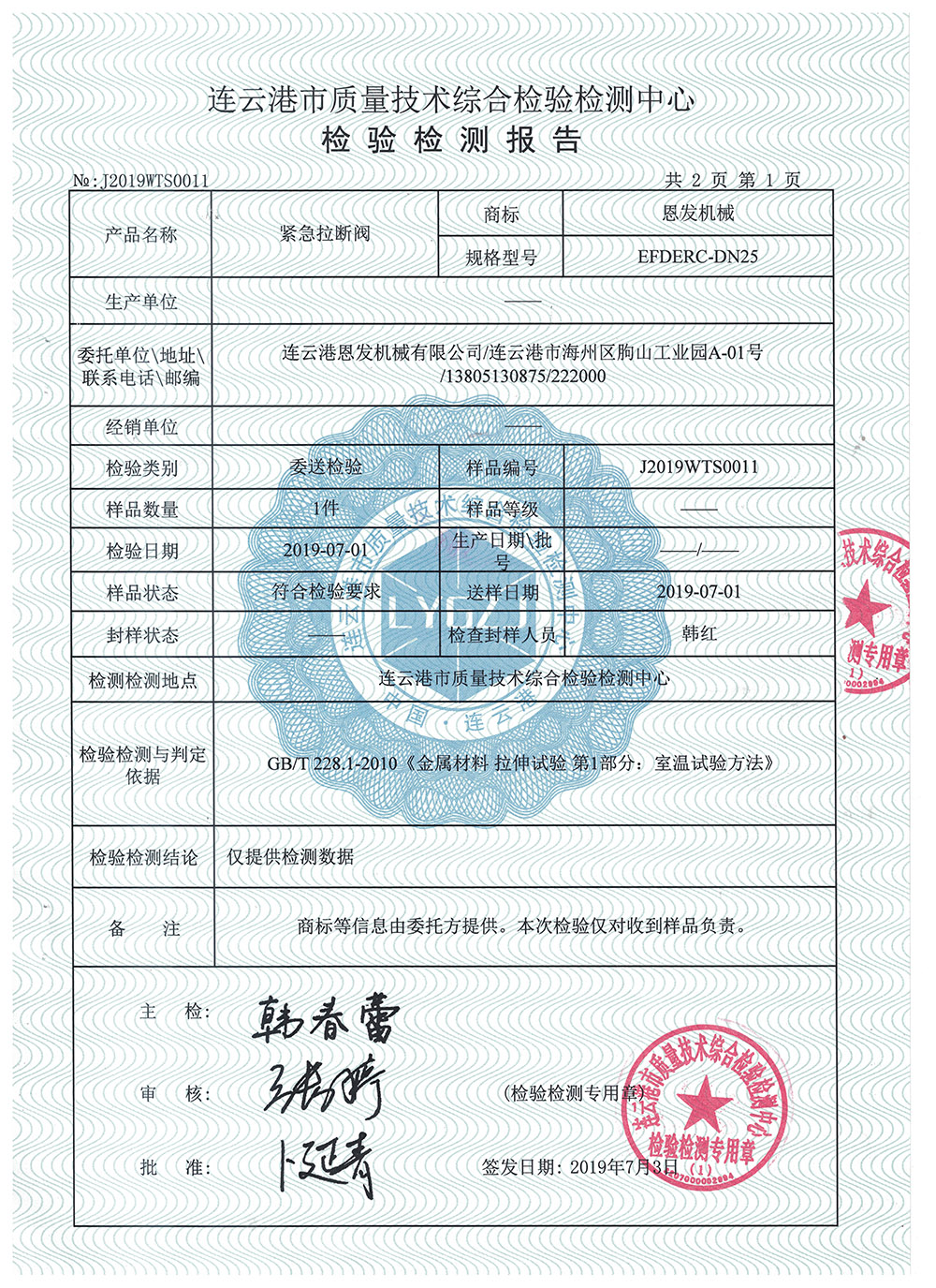 Low Temperature Breakaway Valve Inspection and Testing Report